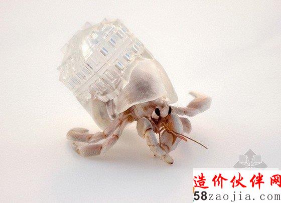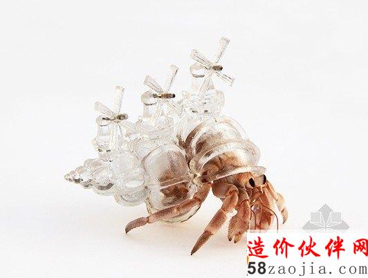 首先, 阿奇那使用CT扫描技术了解了空闲的贝壳寄居蟹的内部形状。文件被3D建模软件所操控,结合建筑的形状,包括东京风味的建筑,法国公寓、赌场等,设计是3D印刷在透明的塑料上面显示的颜色,这体现了她们的审美。寄居蟹当时有塑料壳,可以选择他们自己的家园。