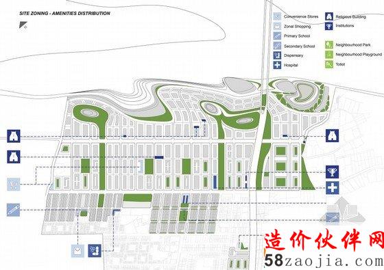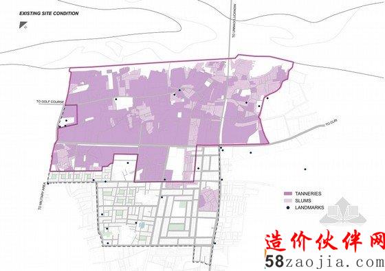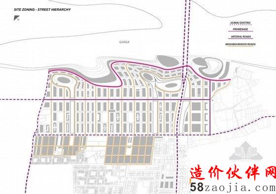 坎普尔这个城市兴起于其历史遗迹的挖掘。一个自勒克瑙坎普尔的交通走廊直通坎普尔的城市入口。独特的位置依傍着旁边神圣的恒河,这些地理位置的优越都成为设计上的优越条件。绿色走廊沿着居民的住宅内部一直延续到恒河边,这里的地形条件使得该地区的绿化覆盖率很高。另外,该设计在其现有的条件之上,很好地保留了当地的考古遗址。