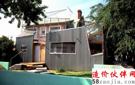 这栋住宅是弗兰克-盖里在建筑舞台上的第一个项目。这座房子在这个充满传统建筑材料的郊区是一个突破,同时于1988年的纽约现代艺术博物馆的“解构主义建筑”展览上以显眼的位置展出。盖里在原有建筑的基础上增加了新的体量,从那时候就表明了这名建筑师的个性正朝着非传统的形式进发。弗兰克-盖里(Frank Owen Gehry)1929年2月28日生于加拿大多伦多的一个犹太人家庭,17岁后移民美国加利福尼亚,成为当代著名的解构主义建筑师,以设计具有奇特不规则曲线造型雕塑般外观的建筑而著称。他现在归化于美国籍,并且生活在洛杉矶,是纽约哥伦比亚大学中有名的建筑教授。盖里的设计风格源自于晚期现代主义(latemodernism)。