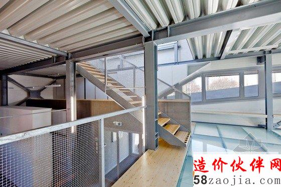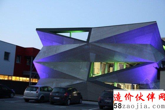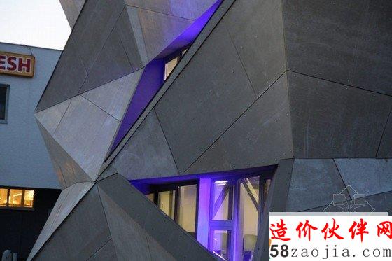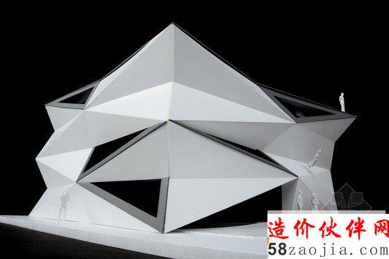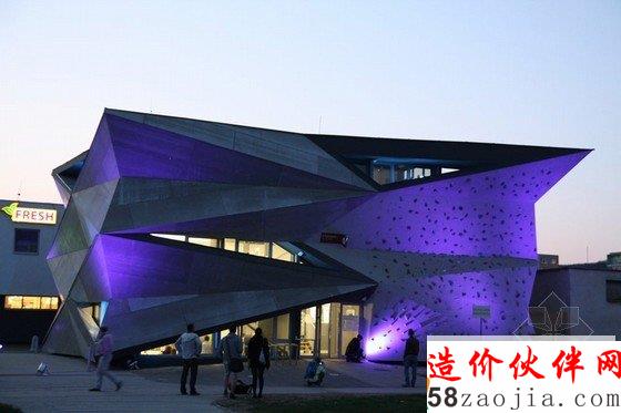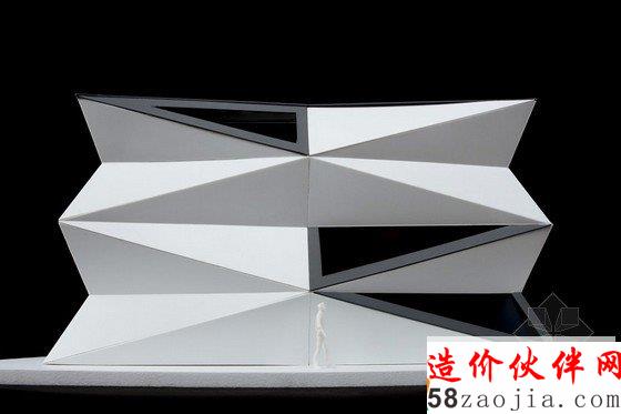 换热器的中心有五个不同的互联层,都变成了走廊空间,每个部分独立形成不同的功能。一个隐蔽的屋顶由四种树木和一个大的起居室组成,为游客提供了一个放松的空间。结构的突出之处在于其周围的工业类型的建筑环境。现有的热交换器被包裹在一个大胆的几何外观里面——折叠的三角形状外观。扭曲的部分的暴露在斜轴的内部视图下,以此帮助来表达新的转换。