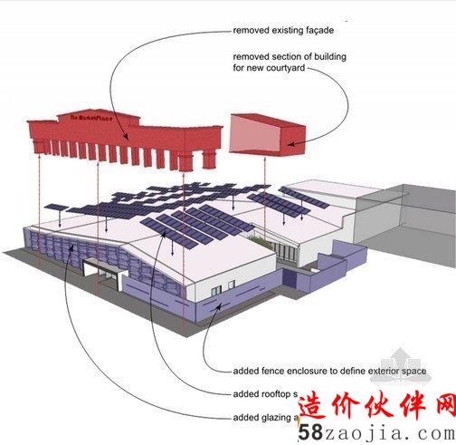 该项目的定位是促进当地经济发展的战略选择,同时也促进周围建筑的改造,由能耗型转变为节能环保型的建筑,为该区域提供可持续性发展的途径。在这个建筑中,白色绝缘泡沫涂料喷在屋顶上,以起到隔热、保温的效果,在其上阵列着太阳能电池板,为室内各项设施提供了能源支持。另外,这里还有一个商业演示厨房,它是高效新能源的“受益者”。在这个能源中心,还有一个功能称为“智能家居”,它连接着各种最新的节能住宅电器、LED日光灯照明设备、节水设备,暖通设备,家用电动汽车充电、太阳能发电和储能系统。