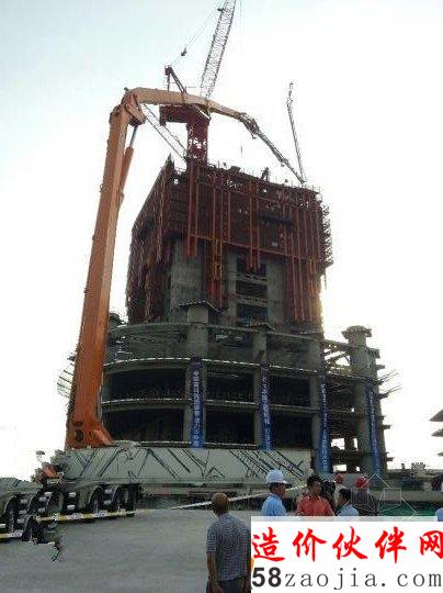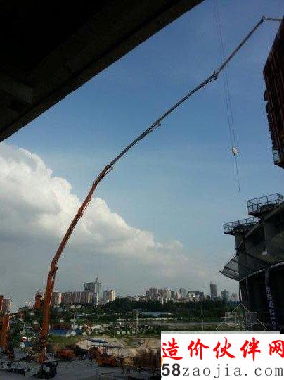 据了解,武汉中心主建筑周围规划了地下停车场,地面为空心,无法近距离架设重型施工机械,泵车只能停放在五、六十米外进行远距离泵送,这个特殊环境正好让101米泵车的超长臂架有了用武之地。