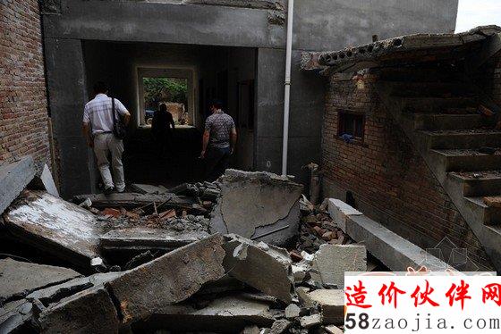 一户村民自行拆房时楼板坠落