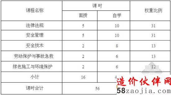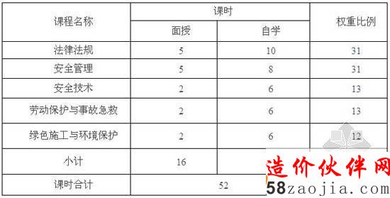 专职安全生产管理人员安全生产培训课时安排