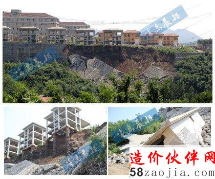 昨日记者来到现场,发生坍塌的挡土墙长约30米,高度在20米左右,其中两座别墅框架露出地基支架,从山脚下看上去如同悬空。