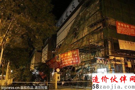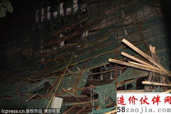摘要:2013年8月14日晚10时21分,受降雨和大风天气影响,甘肃武威正在外装修的一商厦脚手架突然坍塌,从商厦监控上看,当时有两处四人在脚手架下避雨。