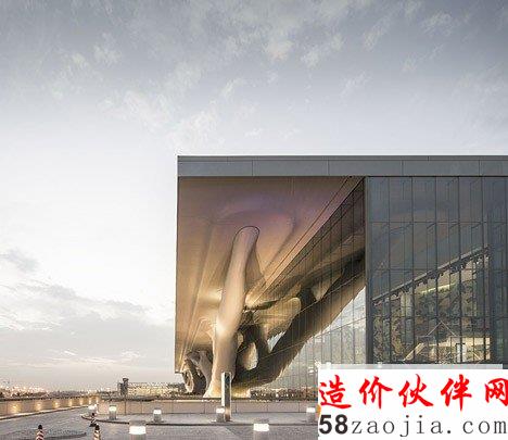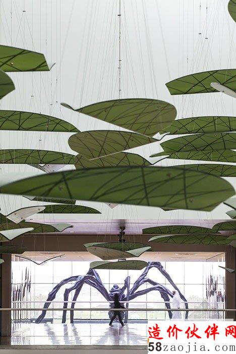 这一设计象征着神圣的伊斯兰树,被认为是七重天的结束。在巨型的玻璃柱前面,一对庞大的钢柱建造成两棵树的模样,支撑着一个屋顶的天棚,也为下面大楼前的公共广场提供庇护。“这棵树是学者的明灯,是沙漠的慰藉,更是诗人和学者们分享知识的天堂。”建筑师说道。多哈的卡塔尔基金会占地面积1000公顷,卡塔尔国家公约中心在2011年12月对外开放。它在中东国家中是最大的展览中心,三个主要的展厅中可以容纳将近7000人。游客通过大型的接待大厅进入建筑,横跨两个完整的建筑。钢筋材质的楼梯连接了上下层,旁边是一堵棋盘状且色彩绚丽的墙。其他的空间还包括一个可容纳4000个座位的会议厅,一个2300个座位的剧院和9个展示大厅,和一系列用于各种活动的52个会议房间。