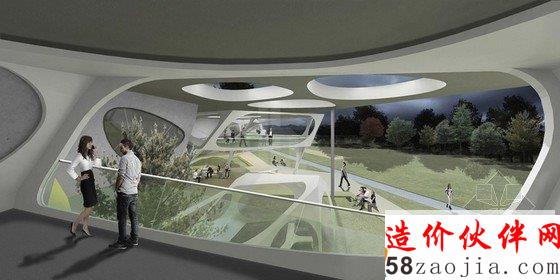 整个建筑是一个“网络”一样的构造,不规则的多边形建筑上面被抠出很多更小的不规则的洞,它看上去,就像圆形的三维蜂窝。这样,在建筑下面活动的人们,便可以感受到阳光、温暖和自然风。整个建筑耗时10年,它是在向现代主义大师致敬。