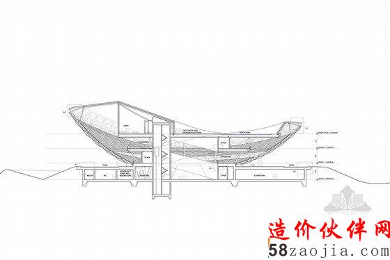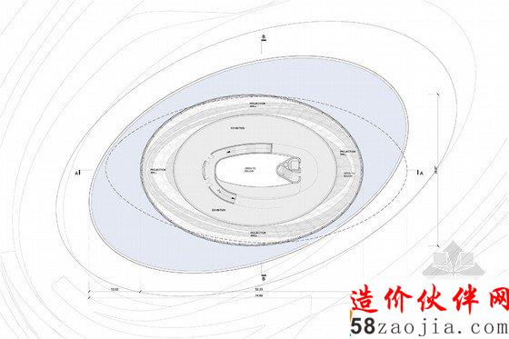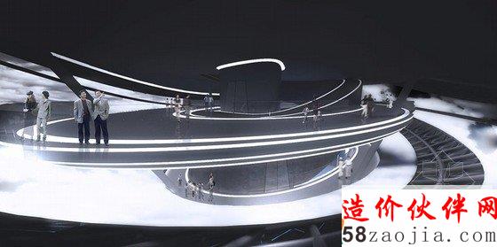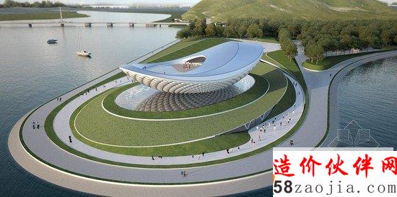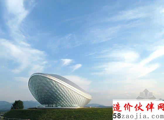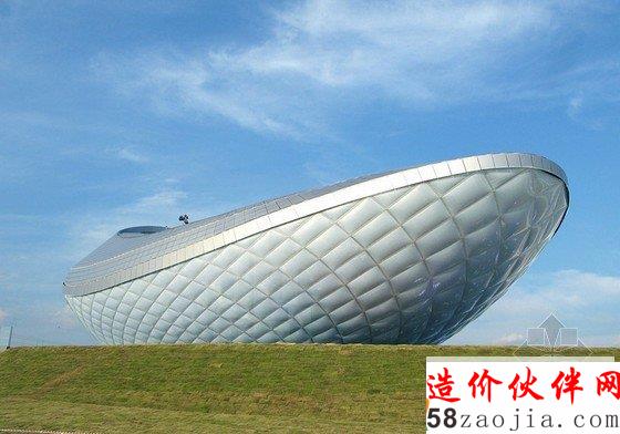 圆弧的设计不仅是出于外形美感的考虑,也是为了强化建筑与周围景物的融合。展馆最初是为了2012年韩国世博会建造的,它是韩国河流文化展馆之一,向人们展示了韩国环保河道修复工程的成功。该建筑中有一个连续的长达60米,宽约20米的无缝投影,安装了这样的投影,使得这个影院赢得了更加完美的投影和放映效果。这360度的投影技术,再加上配置的自动对齐和精确校准的34通道投影系统,该多媒体中心向人们展示出独特的空间艺术。该建筑建在水上,放眼望去,整片展区就只有这座多媒体电影院,余下的空间都被绿植所充斥。这个建筑就像半只鸡蛋坐落在一片草地上,外表由无数方形构成,银色的建筑体显得特别干净清爽。建筑的最上面,是一个互动馆,人们可以经由宇宙飞船一样的轨道进入这个互动馆。