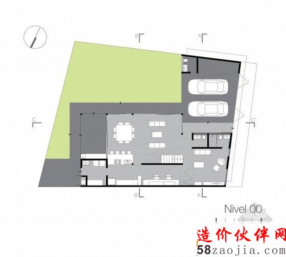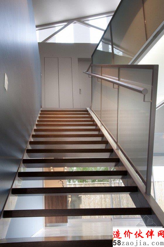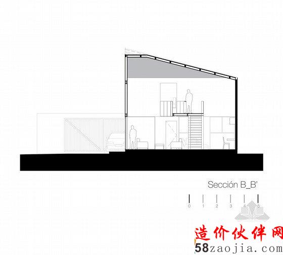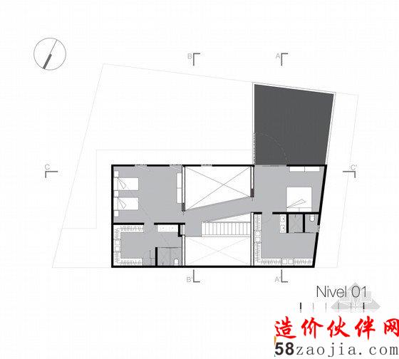 建筑整体呈L型。楼上被分成三个部分,门的开口方向都是对着东方,北面没有门。窗户基本都设在南边,以保证南北畅快的通风和良好的采光。该建筑内部有两个房间和一个客房,一个办公室,一个多媒体室,除此以外还有一间大客厅,以方便父母与子女之间的交谈,或者是客人与主人之间的会谈。