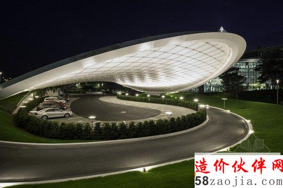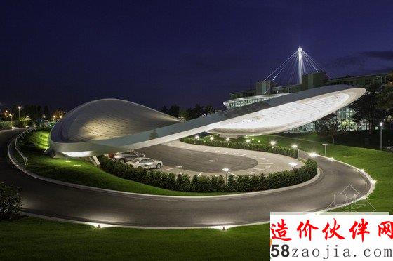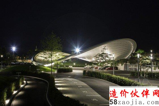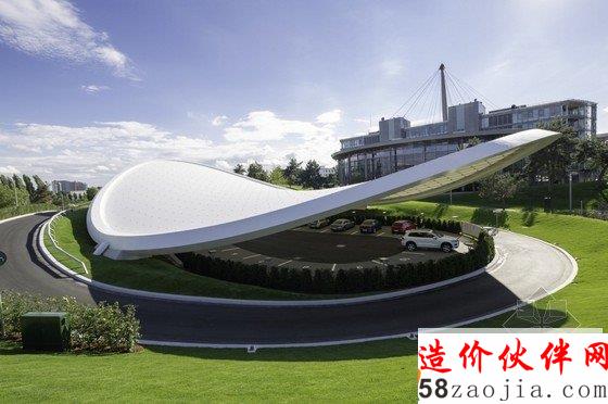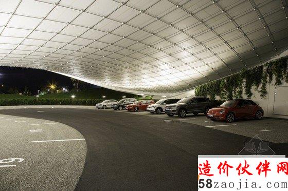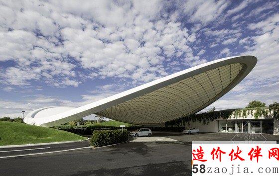 他还精心设计建筑的结构,防止被雨水冲刷和阳光直射,同时又要给予停车坪内以足够的阳光,避免再使用人工照明,造成的人力浪费和能源浪费。至于建筑的形状,设计师采用了一种特别的结构,就像是一个倾斜45度角的网球拍,这样的形状,既能保持内部通风畅快,并且能够接受最大限度的自然光,又能代表一种欢迎的姿态。这个停车坪不仅可以停车,还有一些服务功能。客户可以在这里询问一些关于新汽车或者配件的问题。