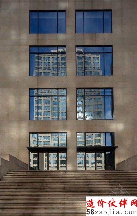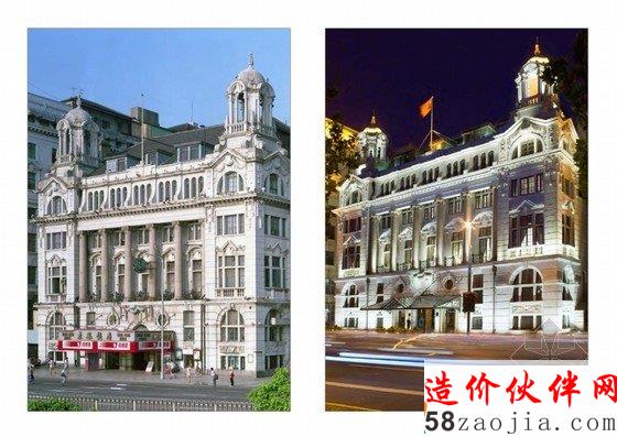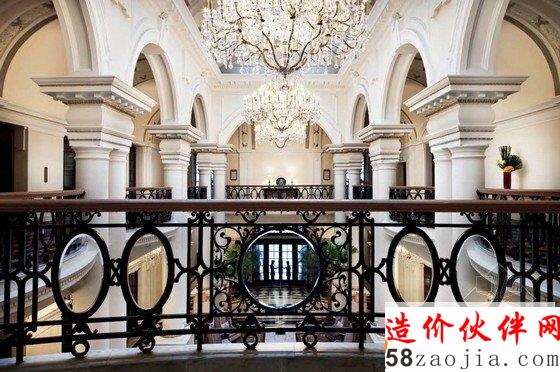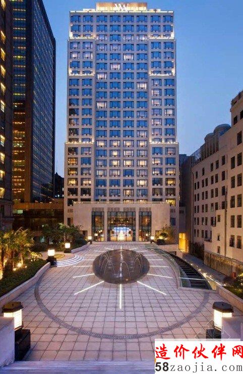 该楼有三层的公共空间和20层的豪华套房。两栋大楼通过庭院相连,隐约地让人想起“在走廊与我会面”式的走道,将华尔道夫的品牌图标—纽约华尔道夫酒店—两座大楼连系起来。该项目最大的挑战便是如何在两栋大楼之间建立亲密无间的宾客体验。为了在功能上将新楼连接至历史大楼,地面层和地下一层设计了一个围合空间。从一个大楼过渡到另一个大楼,宾客将注意到两个建筑之间的相似,具体体现在设计动机、纹理图案、甚至由美国赫希贝德纳(HBA)室内设计公司挑选的内装等方面。在周边环境和设计上,项目组成功地营造出连续的优雅空间,在向该历史大楼致敬的同时,也彰显了今日外滩现代经典之精神气质,当然也信守了对华尔道夫品牌的承诺。