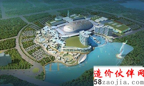 世茂嘉年华项目坐落于“知音故里”蔡甸,位于蔡甸知音大道旁,后官湖畔。据介绍,该项目南北方向长约234米,东西方向宽约140 米,高11.4米,项目占地约800亩,建筑面积超过50万平方米。项目造型呈酒桶形,中心主题公园屋面为椭圆球体,建成后将拥有中国最大的室内主题公园。