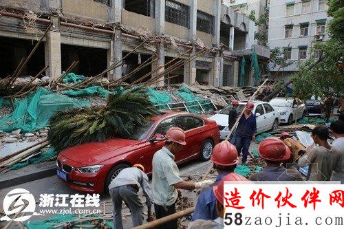 摘要:杭州大厦旁边的三立大厦正在拆迁,整排都倒了下来。脚手架倒塌的原因,可能是由于堆放在脚手架内侧的建筑材料,超了脚手架的载重量,再加上风大,被风吹刮后,脚手架就坍塌了。
