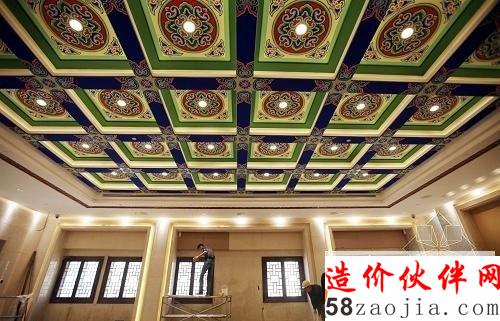 10月20日,工人们在南京博物院大殿内装修施工。
