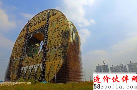 广州圆大厦整栋建筑一共33层,高138米,外圆直径为144.6米,内圆47米。据称,整栋大楼的造价预计为10亿元。自2010年1月3日启动建设,去年6月12日封顶。原计划今年1月份竣工的大厦,由于结构复杂,玻璃幕墙难以安装,工期一延再延。