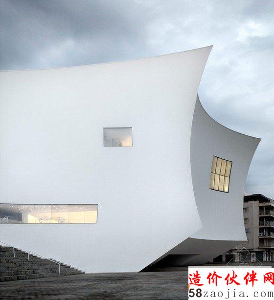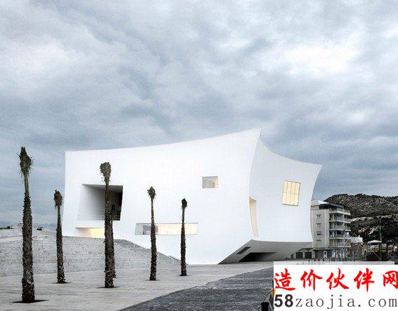 这是由barozzi veiga工作室设计的西班牙会议中心,该建筑的设计很自然地将周围环境与建筑景观融为一体。在这个会议中心里,设有一个大型礼堂、一个较小的剧院以及一些配套设施。整个建筑为白色的立方体,简单、大方,且内部功能齐全。在这个临海的地区,周围的一切自然景观都十分浪漫,该项目的建立打破了这种的单一的气息,正是这种严肃、正式的城市景观,给广阔的海岸线上增添了另类气息。同时,设计师也有意地将绿色环保的理念灌输其中,使用了环保材料和节能灯管。