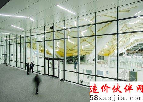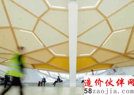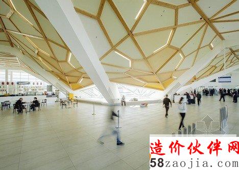 起飞和回航区域的设计都采用了大跨度的设计,并配有开放的空间和高天花板的结构。采用这种设计,在如此巨大的空间内建造,是十分难得可贵的。” 建筑师Ben van Berkel说道。在终点站处,一个巨大的网状木质结构覆盖在天花板上,创建出了一个中央枢纽区,在这里可以供乘客们换乘和流通。在这个中央结构中心,有一个被玻璃围成的中央庭院,来往的乘客可以在外面欣赏到里面的风景。整座建筑被玻璃包裹着,这样也就创造了一个光线富足的室内环境,并且通过玻璃还可以欣赏到室外高加索山脉的景观。