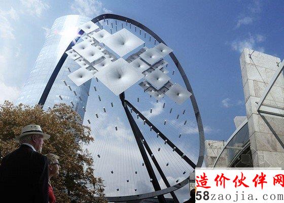 摘要:纽约REX工作室设计的这个阳光响应雕塑能够防止强烈太阳光对雕塑的伤害。42层高的博物馆塔反射的阳光照射在Renzo Piano设计的Nasher雕塑中心的玻璃屋顶上,对里面的艺术品造成威胁。因此REX在两个建筑物之间设计了一个120米高的遮光罩。