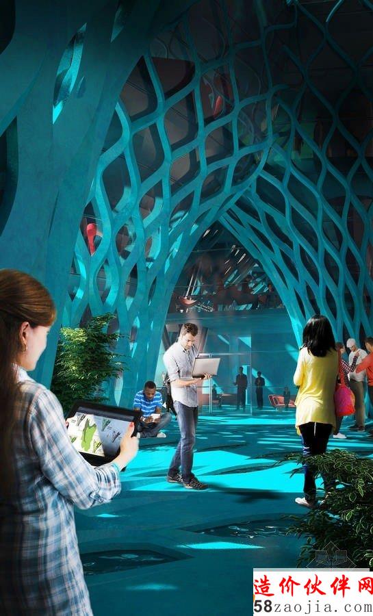 这是一个非常聪明的设计。抽象模式的波斯艺术,在伊朗建筑历史上被称为"Karbandi"。New Wave Architecture建筑事务所在过去的几年里,展示了不少伊朗风格的建筑,但是这次的设计模式实实在在的彰显了工作室的新水平。设计过程充满了困难和挑战。面对困难和挑战,2015年米兰世博会的设计方案将会以一个独特的方式向世人展现出全新的建筑。对于推动国际交易会和博览会,将起到十分重要的作用。作为初始步骤,首先确定了世博会建设的准则和指南,逐渐的,一个清晰和令人印象深刻的形状逐渐呈现在大家眼前。为了最大限度的利用日光,层次分明且间接可访问的波斯花园被刻画出来。自然光线,溪水,和树木是本次设计的基础元素。