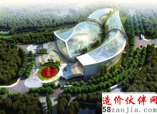 世园会的植物馆独特的弧线钢结构拼贴透明玻璃幕墙,造型别致外观清爽剔透。若是站在百果山顶俯瞰,这座庞大的建筑宛如嵌在山谷中的璀璨水晶叶片。建成后,世园会植物馆将成为中国第一个节能温带温室,同时也是亚洲最大的温带温室之一。