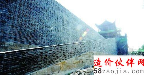 新建一段200米长的城墙新建一座四层结构的城楼城墙脚下新建小型商业区恢复100多米的城墙遗址