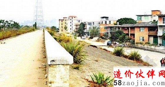 防洪堤被挖了一条路,直通堤外的住宅