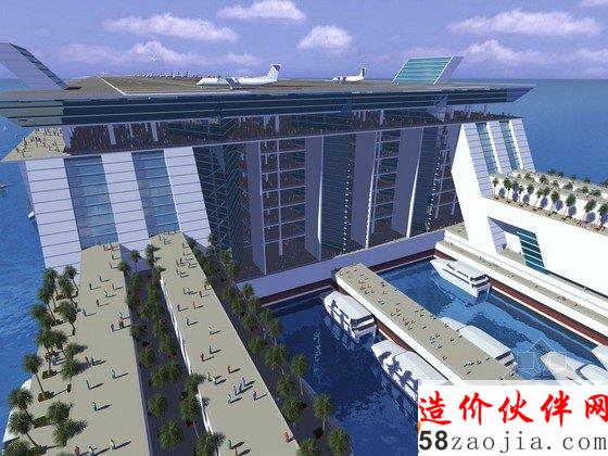这个水上城市将会包括:18000个居住空间,价格在18万~250万美元之间,极少数的超豪华房间超过了4400万美元。3000个商业空间,价格和居住空间差不多。2400个公共场所,10000个酒店房间。