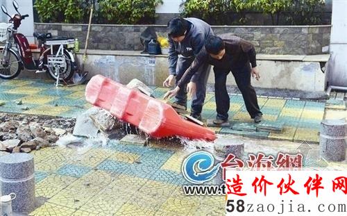 施工单位人员介绍,当时工人开挖人行道,挖了三四十厘米深,挖破了水管,水流喷涌而出。管口直径为63毫米,维修花了1个多小时,对周边用户有短暂影响。