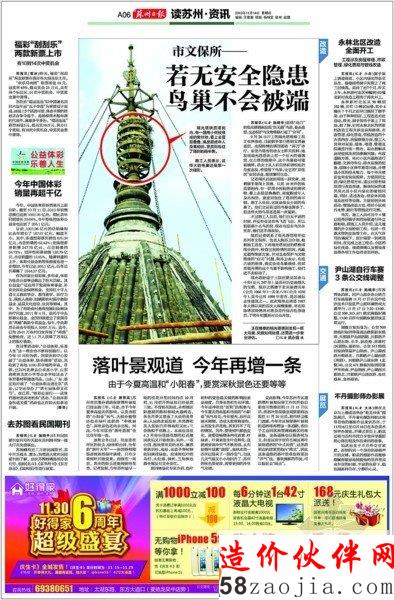 苏报11月14日曾对瑞光塔上的“巨无霸”鸟巢进行报道