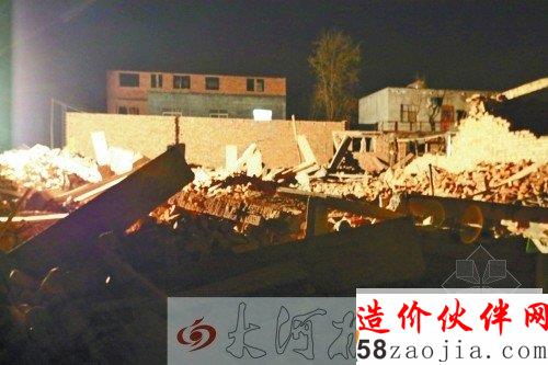 昨晚8时,大河报记者赶到西徐村,黑夜笼罩下,一群村民围着一个火堆在聊白天的事。火堆边是一个长约15米、宽约6米的砖瓦废墟,废墟北是一个刚盖了一层的楼房。