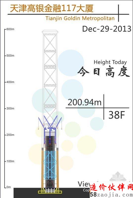2014年,117大厦施工速度将进一步加快,最快可达三天一个结构层的施工速度,预计明年下半年,117大厦主塔楼将超越由中建三局在1991年建成的总高度为415.2米的天津广播电视塔,届时117大厦将成为天津城市的制高点。