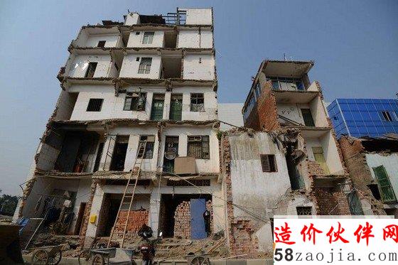 摘要:2014年1月2日,广西南宁市,长堽路扩建路段两边出现了两排之前因为拆迁遗留下来的“危楼景观”楼房,路边很多楼房都是只拆掉一半,另一半没拆掉的就像危楼一样依然矗立在那里。