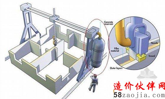 美国南加州大学的“轮廓工艺”3D打印技术项目,由美国航天局出资赞助。据“轮廓工艺”项目负责人、南加州大学教授比赫洛克·霍什内维斯介绍,“轮廓工艺”其实就是一个超级打印机器人,其外形像一台悬停于建筑物之上的桥式起重机,两边是轨道,而中间的横梁则是“打印头”,横梁可以上下前后移动,进行X轴和Y轴的打印工作,然后一层层地将房子打印出来。