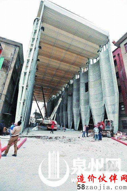 按照设计,“东亚文化之都·2014泉州”古城文化复兴计划一期工程,是一个骨架支撑式膜结构,以钢结构为骨架。由南北两侧和顶部各16组半环形钢结构轴面,组成一个长近百米、高二三十米的钢结构长廊。其中,南北两侧的钢结构轴面内部装饰高强度的GRC复合板材;顶部的钢结构轴面覆上与“鸟巢”类似的膜结构。