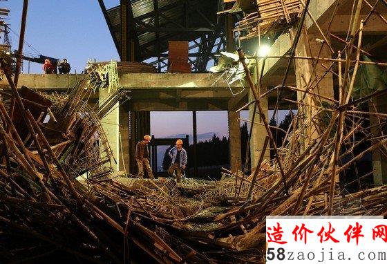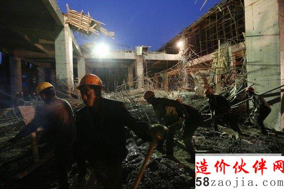 据了解,垮塌建筑将建成一个悼念厅,垮塌的是楼层高处的混凝土平台以及支撑它的脚手架。坍塌的吊唁厅顶棚约上百平方米,坍塌发生后,约30多吨尚混凝土将钢筋铁笼、脚手架全部压垮。正在作业的10余名工友全随着顶棚支架坠落。清点全部工友时,一直找不到一名工友,怀疑被埋在了坍塌的废墟中。