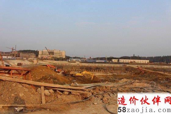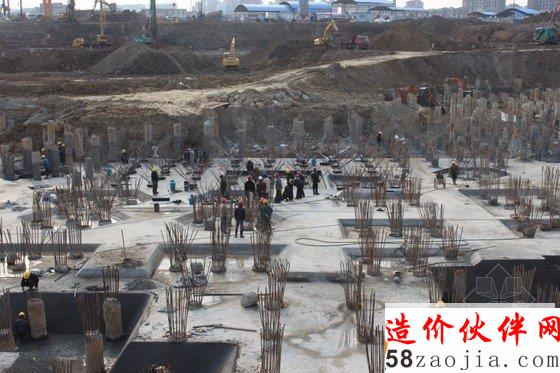 图为正在进行地下负二层的垫层施工