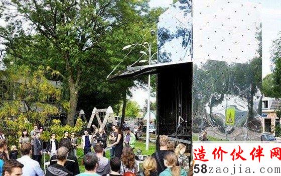 来自荷兰建筑事务所 DUS 采用的 3D 打印机就是这么做的,因为它够高。这台 3D 打印机名字叫 KamerMaker(荷兰语:房屋建造者),高达 3.5 米,装在 6 米高的集装箱内,同样是利用塑料来打印房屋。在正式打印之前,他们还利用小型打印机进行了 1:20 的模拟打印测试。