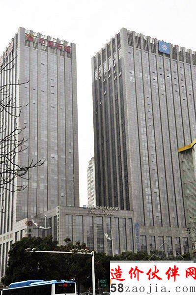 (长沙芙蓉中路上装有幕墙的某大楼。)