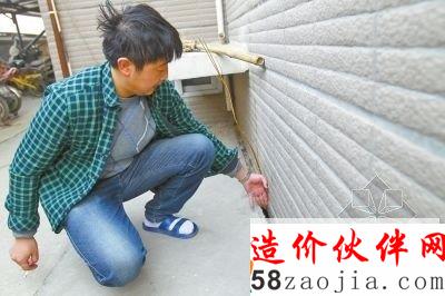 小区1号楼、2号楼、3号楼、4号楼墙根处都有裂缝。其中4号楼墙根处,有不少近5厘米宽的裂缝。为了探究裂缝深度,一位业主拿出一根2米多长的树枝,从裂缝里插了进去,一根树枝全部没入。