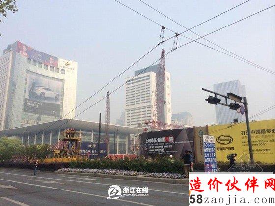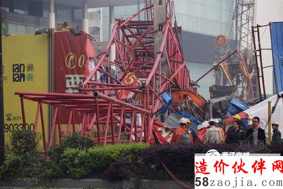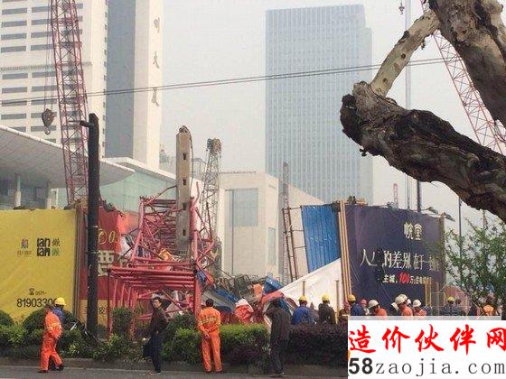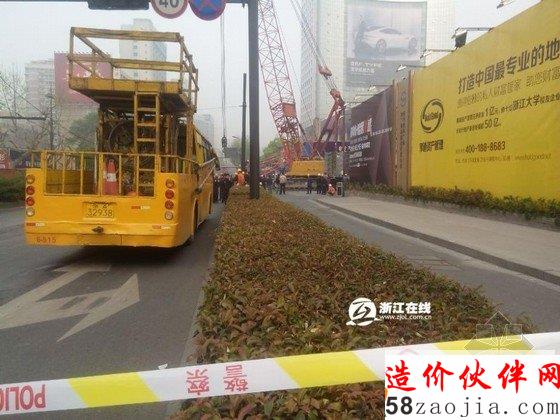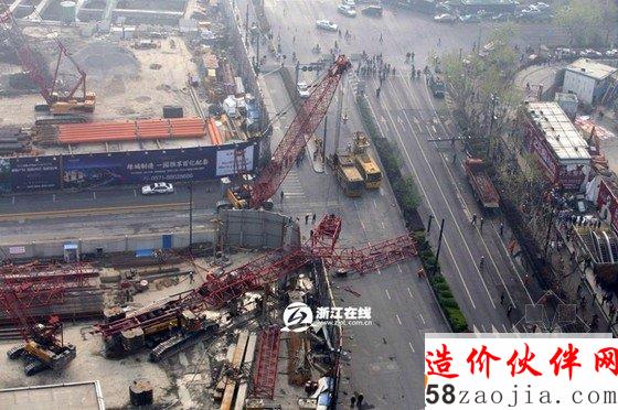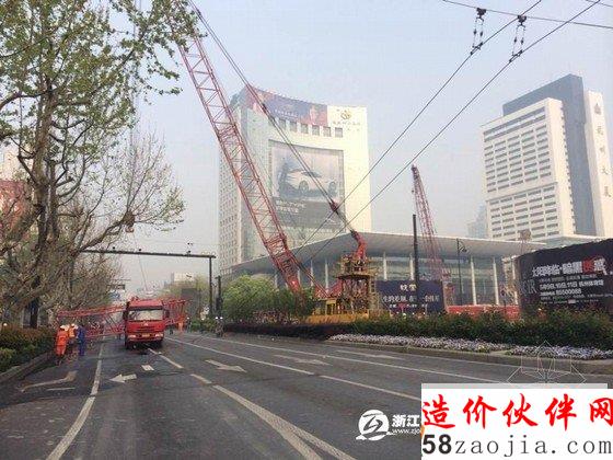4月9日5时27分,体育场路武林广场西跑道内一施工履带吊吊臂倒塌,导致早高峰时段体育场路东西双向交通中断。倒塌时,吊臂砸到地下商场上一辆挖掘机,司机被送往浙二医院后抢救无效死亡。