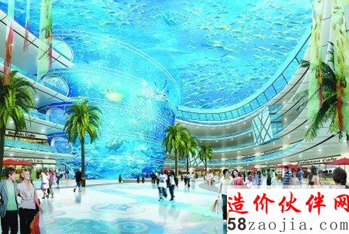 其中,以垂直观光电梯为核心,横向延伸15米、竖向延伸到顶,将修建一个海洋水族馆。用钢化玻璃维和封闭,配置海豚等观赏鱼。