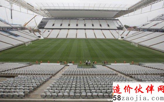 当地时间2014年4月15日,巴西圣保罗,作为2014世界杯开幕式举办地的圣保罗竞技场依然没有完工,此时距离世界杯开幕仅剩下两个月不到的时间。圣保罗竞技场世界杯期间将举办包括揭幕战巴西VS克罗地亚在内的6场比赛,能容纳70000名观众。世界杯结束后球场规模将缩小至45000个席位。