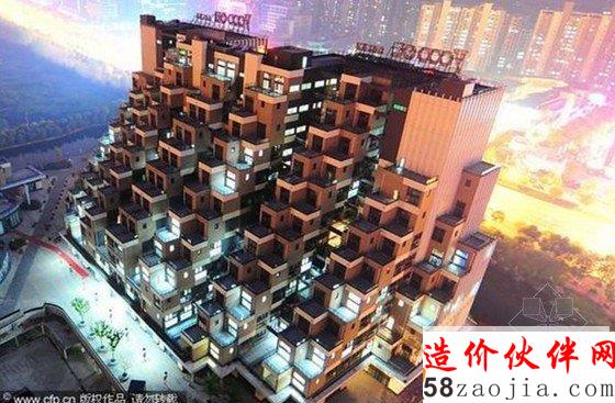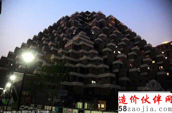 2014年4月14日晚,夜幕下的江苏省昆山市花桥国际商务城楼盘“游站”,这座设计独特的楼盘去年被网友吐槽“金字塔”楼引发广泛关注。时隔近一年,摄影师14日晚实地探访发现,“金字塔”楼盘建设已经全面完工,有不少业主开始进行室内装修入住,在夜幕下,极具现代气息的奇葩建筑“金字塔”楼尽显“另类”风采,成为花桥国际商务城新地标建筑。
