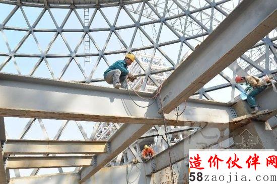 建设者在屋顶球型建筑焊接施工。