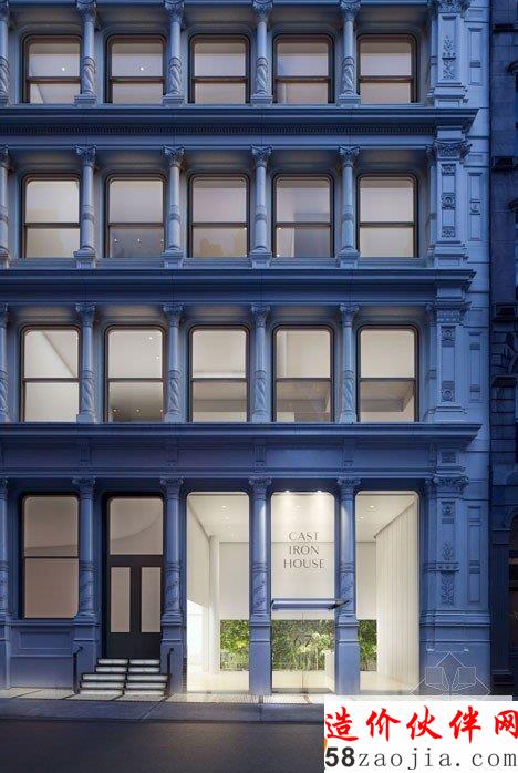 这些公寓建在1882年就建成的铸铁包层建筑,历史比较悠久,这是纽约最受欢迎的居民区之一。坂茂是此次内部重建项目的设计师。开发商Knightsbridge Properties认为此次设计会打造“特里贝克地区新古典主义的里程碑”。坂茂表示:“我们把Cast Iron House的建筑理念比作瓶子中的一艘船, 原来的铸铁住房表面是瓶子形状, 而重建项目要打造新的现代化室内环境,就是这艘船了。”超过4000个的外部铁板包层已经被移除,送到阿拉巴马的一个铸造车间,进行修复和重造,保留必要的原始设计细节。铸好之后,会重新安装到建筑的正面。顶层公寓采用双层式结构,与现有的建筑融为一体。站在街上看的话,这种设计好似悬在了建筑上空,采用的是钢桁架悬臂梁和玻璃墙。这些玻璃墙围绕顶层公寓修建,连接着室内和露台,有超过130平方米的室外空间。其余的二联式公寓采用“教堂风格”进行设计,有两层高的空间,大小各异,居住面积最小为265平方米。厨房、起居室和卧室将采用涂漆的细木工家具,颜色为哑光白色。设计师还重建了大厅,中心区还有公共庭院。该项目将在2015年竣工。摄影是海耶斯戴维森。