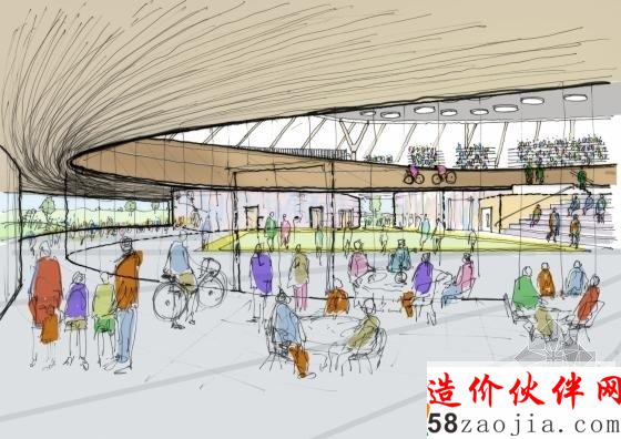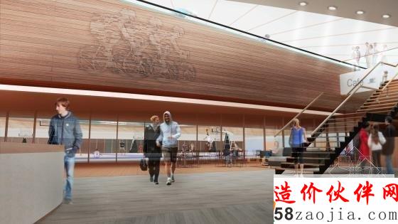 自行车道是高于地面的,与地面的社区娱乐设施相连,比较直观。从入口进来,就是公共活动区和篮球场,连接着周围的公用场地和绿地。建筑师表示,与世界上其他地区的室内自行车馆不同,这座场馆的车道经过抬高,位于上层,十分显眼,与众不同。从场馆的中心处向四周望去,能纵览附近的美景。车道的建材通常是生长周期较长的西伯利亚云杉。建筑师正在和加拿大木材委员会进行沟通,试图找到更多当地供应的合适木材,从而促进整个项目的可持续发展。