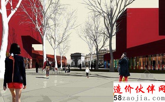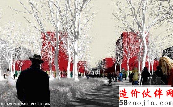 摘要:凯旋门附近有12条大街,成扇形向周围延伸,福煦大街就是其中之一。街道有140米宽,与香榭丽舍大街相比,其更加特别,因为香榭丽舍大街宽度不超过40米。Hamonic + Masson希望重新设计,注重设计步行街,新建森林公园,添加多功能建筑,比如零售店面、办公室和住宅。
