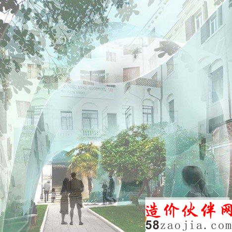 建筑师要在18世纪的莫拉-卡纳雷乔宫入口的庭院处打造这种玻璃结构。Kohki Hiranuma设计的这种承重结构仅仅采用弯曲的玻璃,不采用其他的建材。这种设计回环往复,似乎没有接缝,但实际上是采用树脂将玻璃粘合在一起。