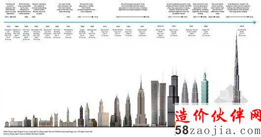 摘要:在过去一个世纪,世界经济已经历了一系列危机,而建筑被认为是这些危机的先兆。两年前,英国金融集团巴克莱公布了1873年以来伴随着经济衰退的摩天大楼建设项目名单。